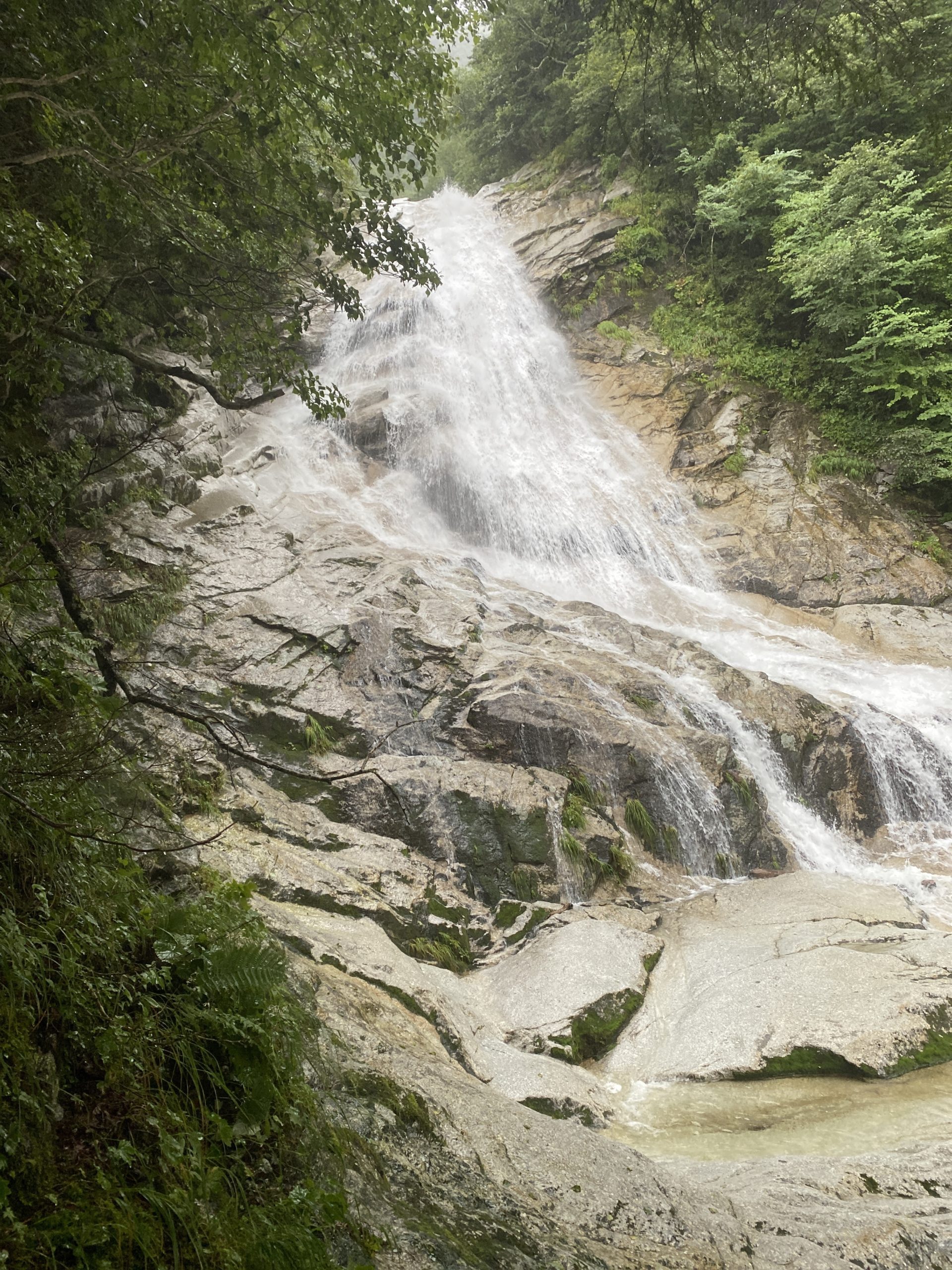 8月21〜22日の土日は甲斐駒黄蓮谷へ。天気は不安定な予報だったが、初日の夕方少し降られただけで、だいたい曇り空だった。この沢は尾白川から千丈滝までは花崗岩の美しい渓谷。奥千丈滝より上は広いスラブ滝が連続する登攀的な谷にガラリと様変わりする。千丈ノ滝上でテント泊した翌日は、都合により五合目にエスケープして下山。山レコログ