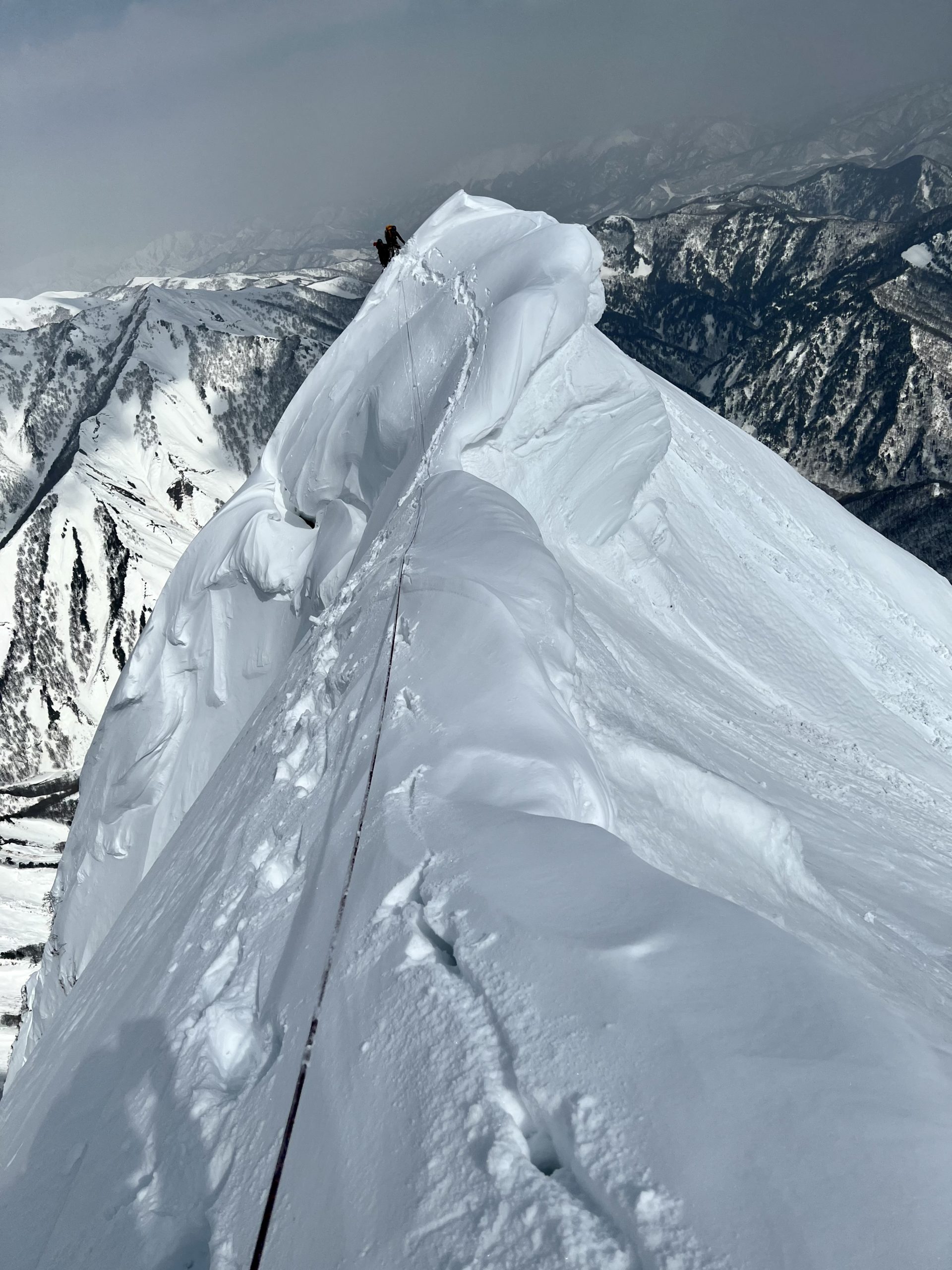 3月5〜6日で谷川岳東尾根へ。谷川岳は今年未曾有の豪雪。まだ厳冬期の様相で、雪質も不安定で、雪庇も大きく、シュルントもあって苦労した。竹十字を埋めて懸垂下降したり、オーバーハングしたシュルントをスコップで崩して越えたり、今まで3月の東尾根は3回登っているが、ワンランク上の東尾根だった。歩き出しから肩の小屋までおよそ12時間要した。